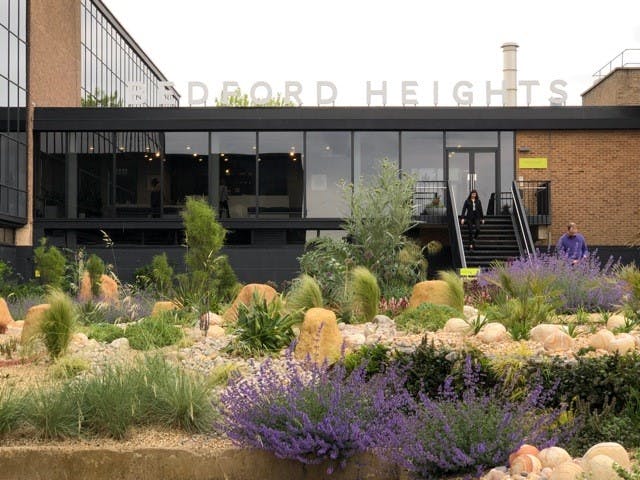 A series of bold interventions responding to the brutalist 50s architecture of the original factory building have transformed this building into a vibrant new workplace.